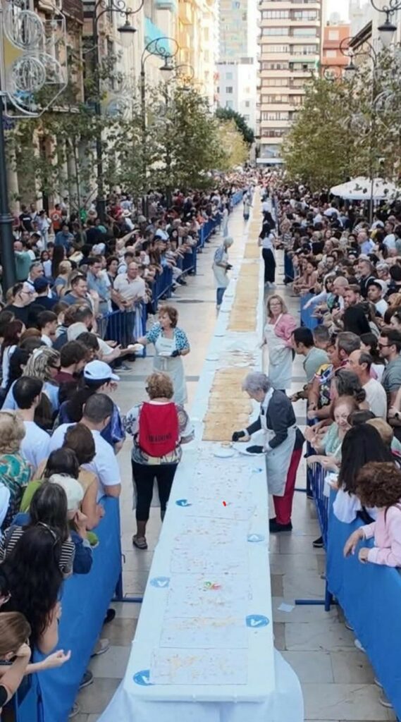 Este sábado, en Alicante, capital Española de la Gastronomía 2025, se ha celebrado un gran RETO. Por toda la Avenida de la Constitución se ha extendido el sabor y tradición de la coca de Mollitas más larga del mundo.