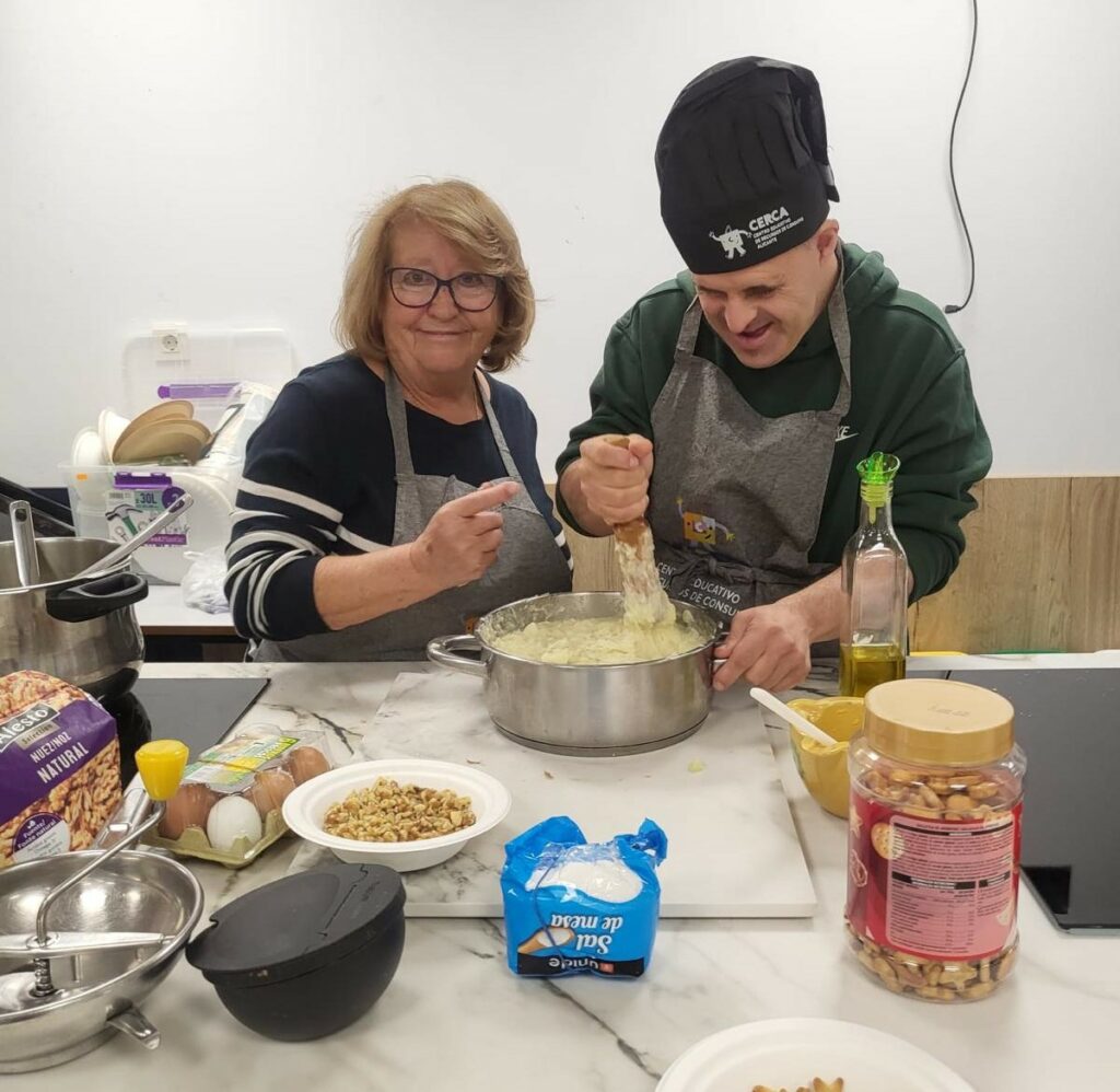 En este taller, Ismael y Miguel, dos de sus integrantes, colaboraron con nuestras voluntarias Angelina, Llanos y Emma en la demostración culinaria, aportando su entusiasmo y trabajo en equipo para hacer de este evento una experiencia enriquecedora.
