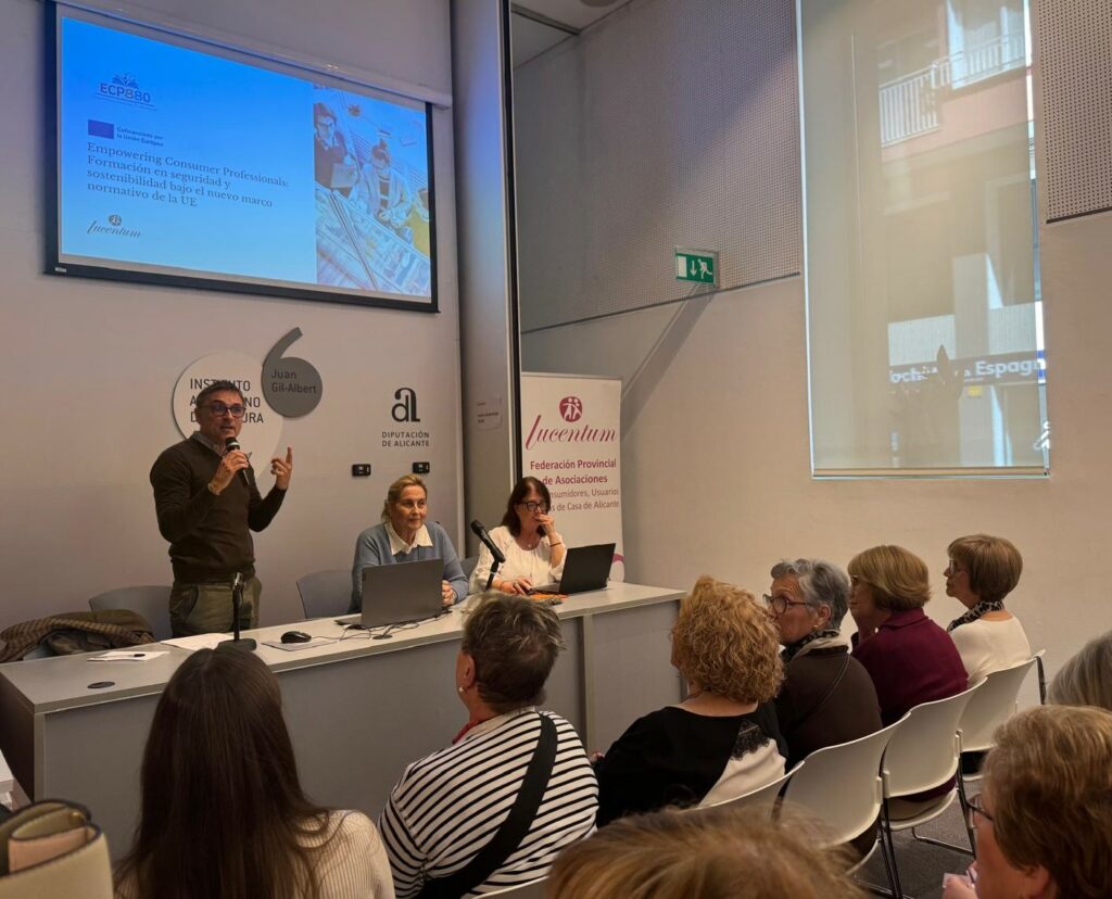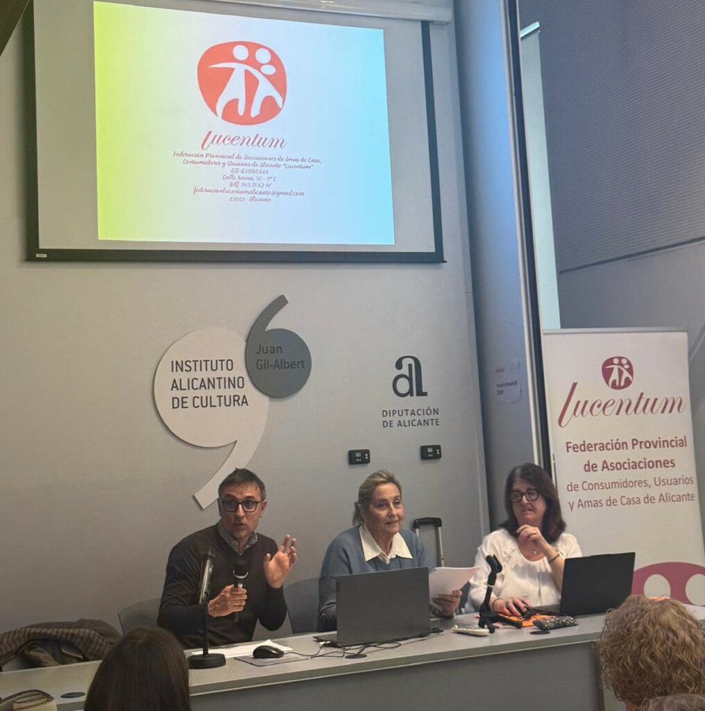 La Federación Lucentum de Consumidores y Usuarios presentó el pasado 24 de febrero el Proyecto ECP 880, en el que trabaja junto con AIJU y APSI, ante algunas de sus asociaciones locales federadas. El encuentro contó con una gran participación y reunió a representantes de 21 municipios de la provincia de Alicante.